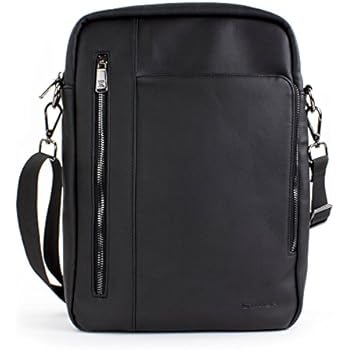 Tablet Bag, Snugg Leather Crossbody Shoulder 12.9” Inch Tablet Bag [Soft Interior] For iPad, Samsung Tab, Google Pixel C, Surface Pro, MacBook Air - Black